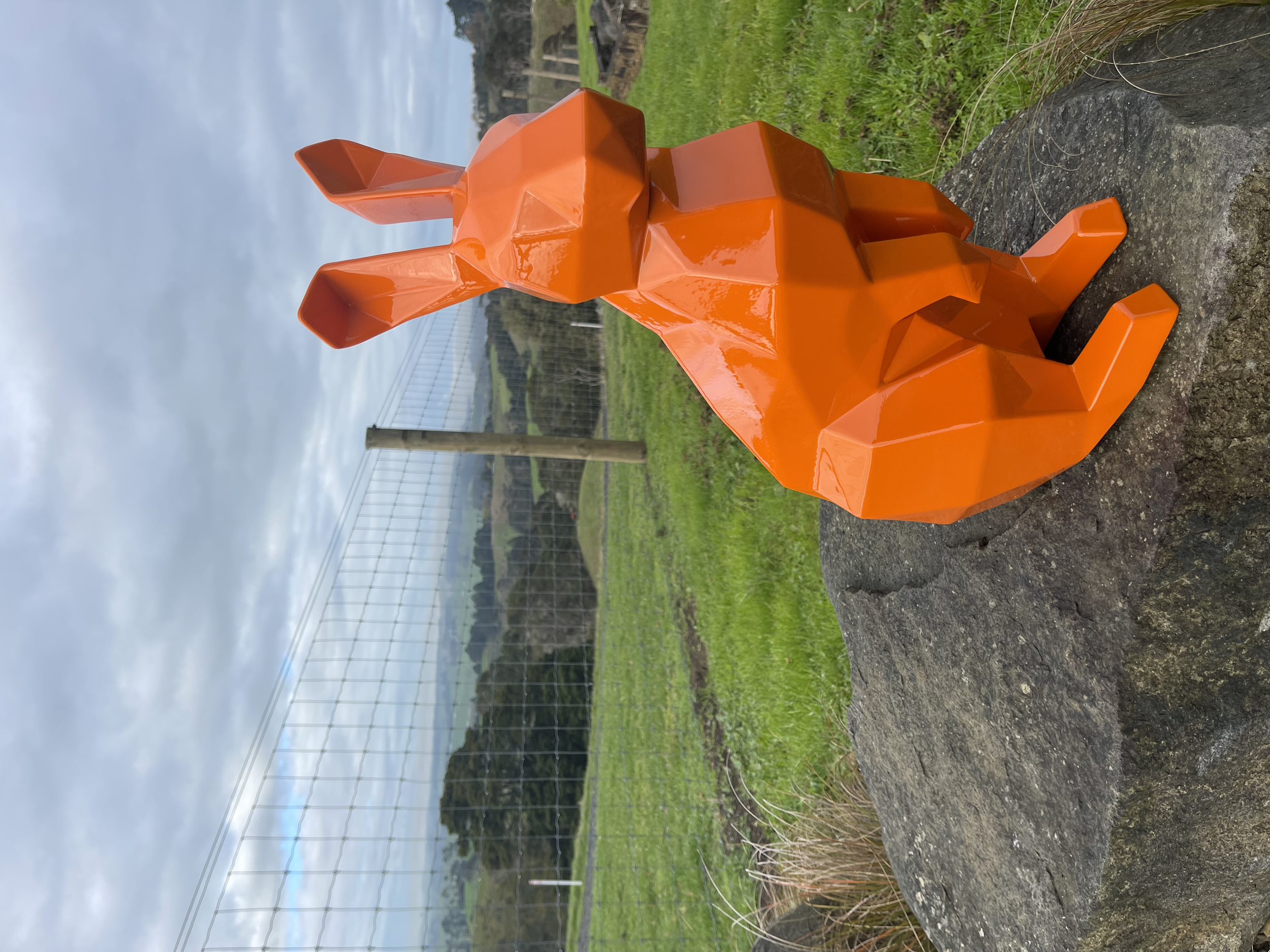 This sculpture is constructed from plate steel and finished with a durable commercial-grade powder coat, depicting a rabbit in an upright standing pose. Its bold form and clean finish create a striking balance of strength and charm. Designed to add character to your space, the piece captures the lively spirit of the rabbit while offering a contemporary artistic presence. Perfect for making a playful yet refined statement in any setting.